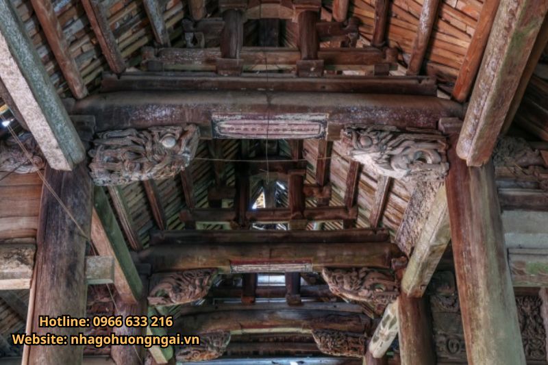 Hệ thống kèo, xà: Được làm từ gỗ lim, gỗ mít hoặc gỗ hương, giúp tăng độ bền và tính thẩm mỹ.