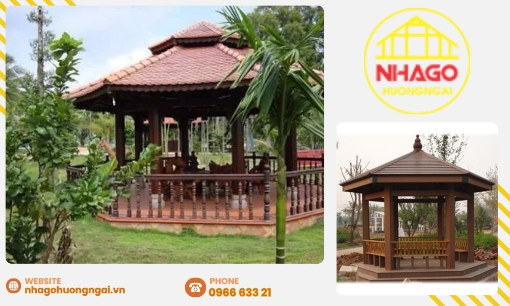 | Chòi gỗ mái lá | 2.5m x 2.5m | Nhà vườn, sinh thái, thích hợp với cây xanh |