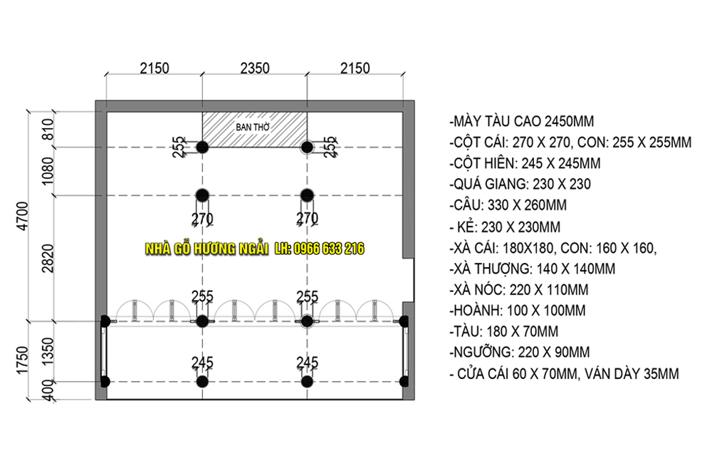 - Cột cái vanh 850mm, cột con vanh 800mm, Cột hiên vanh 760