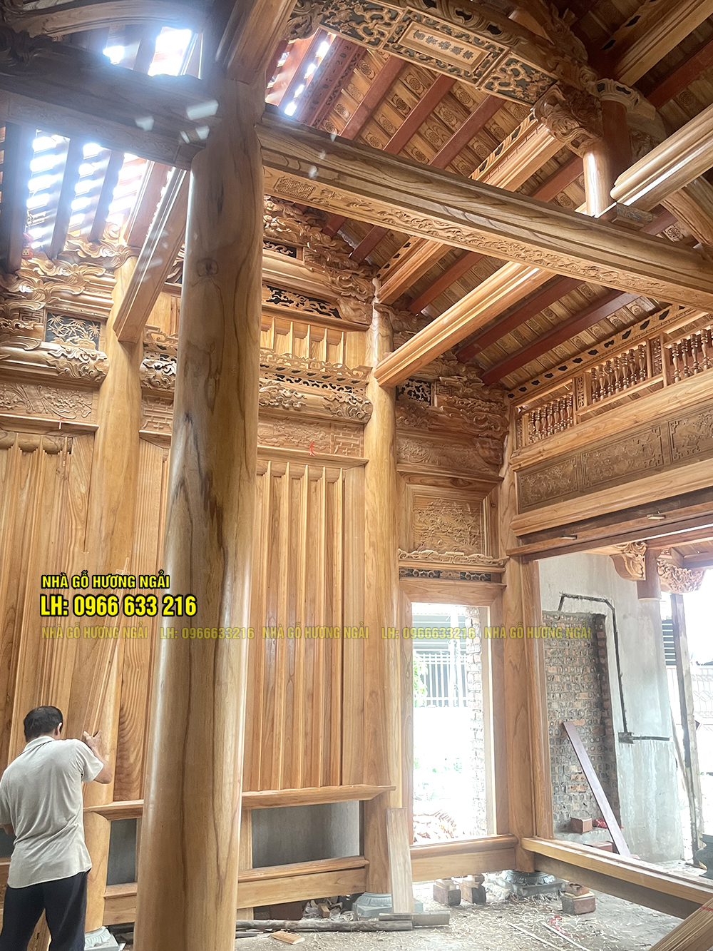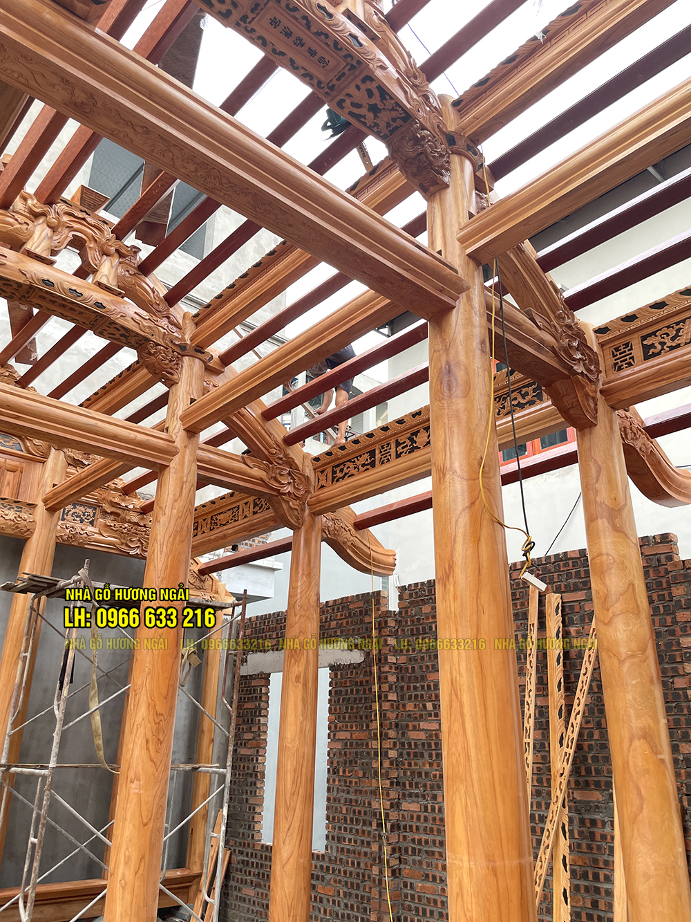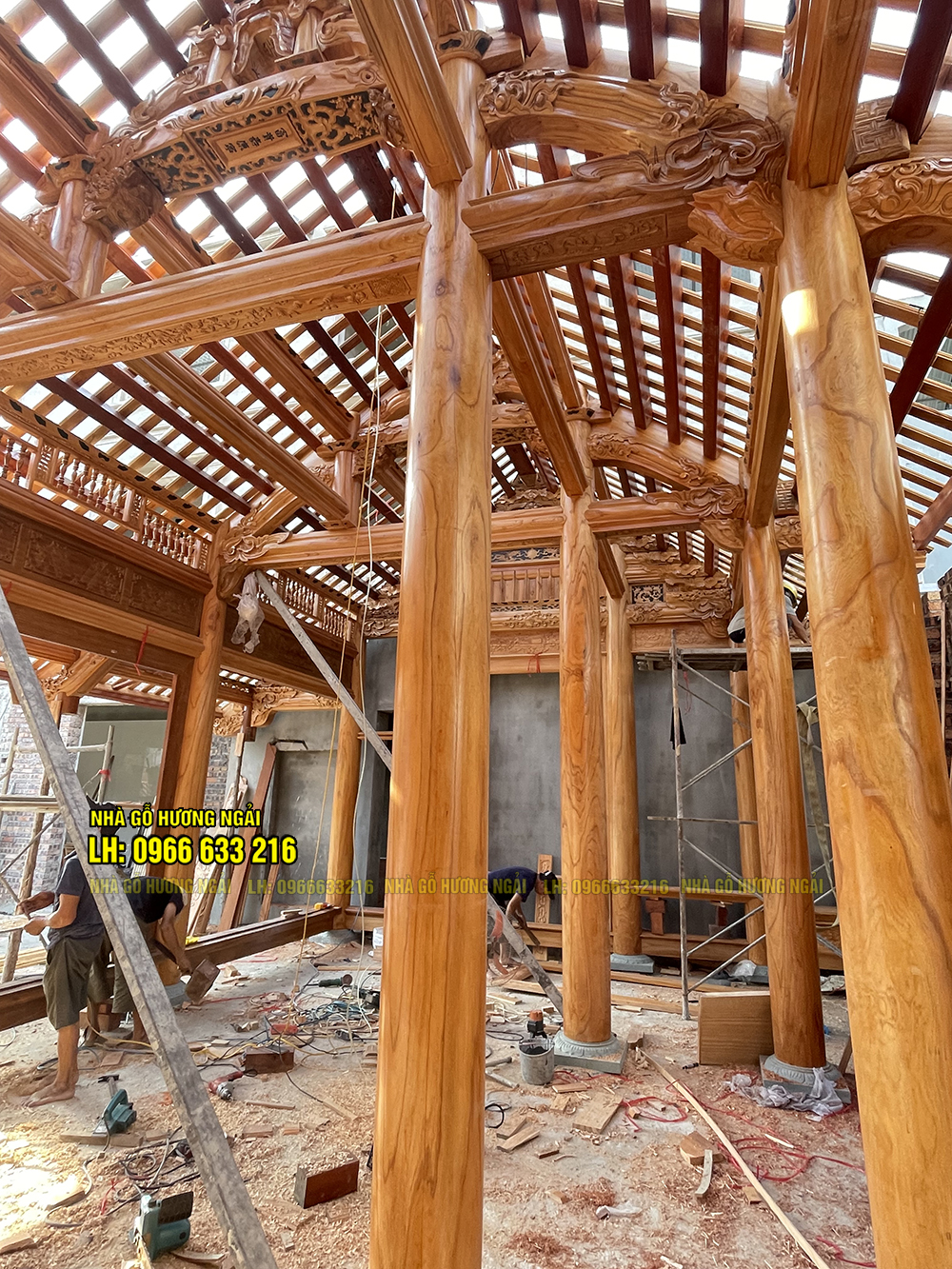 Lắp dựng nhà gỗ xoan 3 gian 20 cột10:52 - 18/01/2025Hình ảnh quá trình đang thi công, Hình ảnh quá trình lắp dựng nhà gỗ xoan ta 3 gian 20 cột đứng đất THÔNG SỐ NHÀ Lòng nhà rộng: 5,55m Gian rộng: 2,75m Hiên Rộng: 1,95m Mày tàu cao: 2,45m Cột cái 30cm, cột con 28cm Chia sẻ: