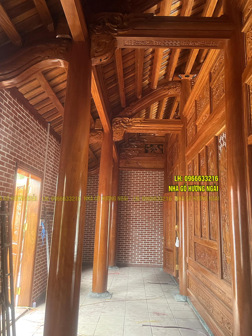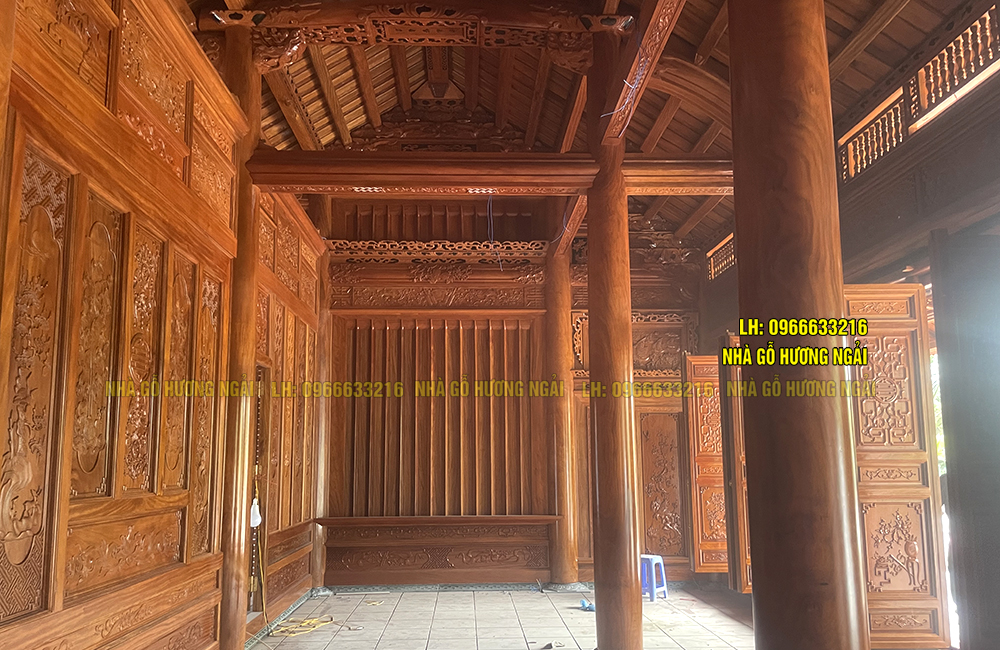 - - Hiên rộng: 2150 mm- Hai vì giữa kẻ truyền, hai vì bên con trồng đấu sen