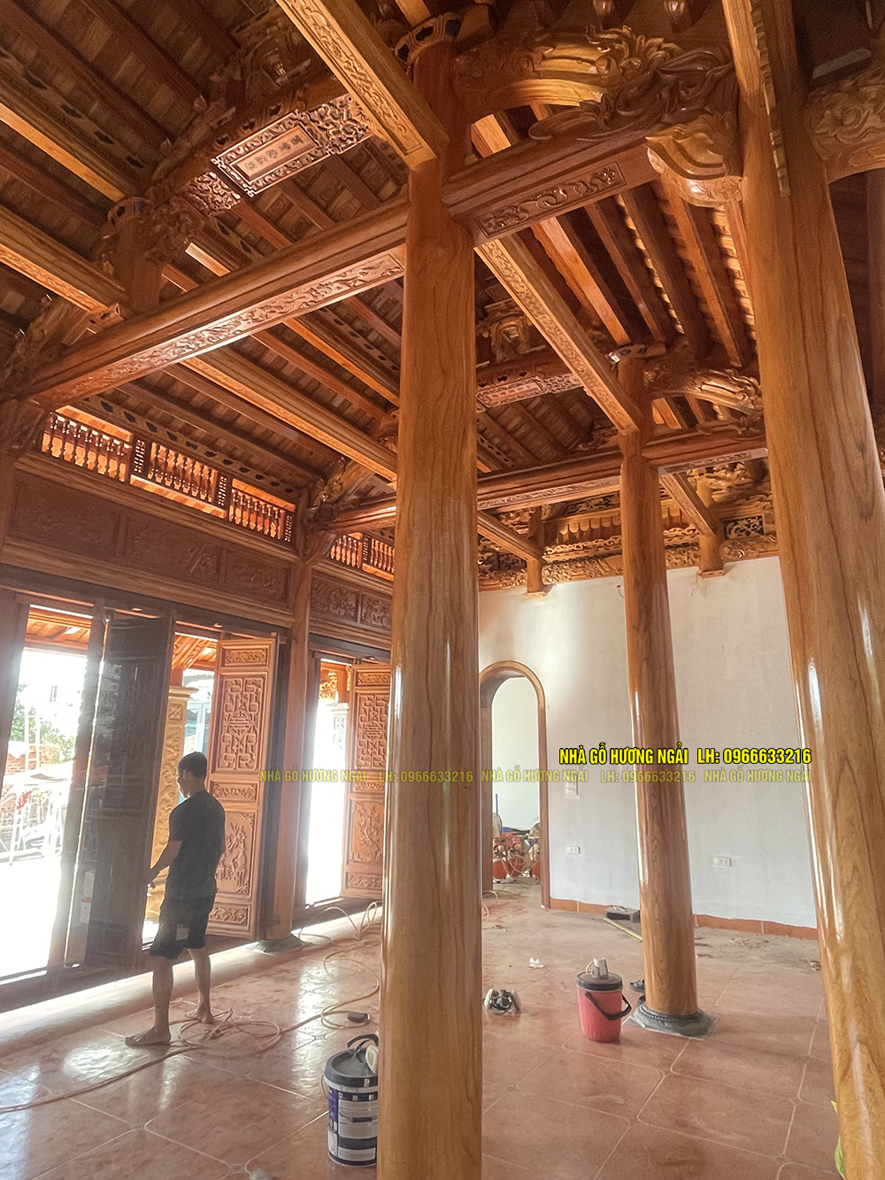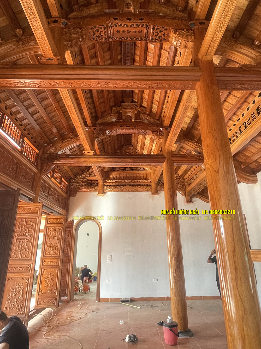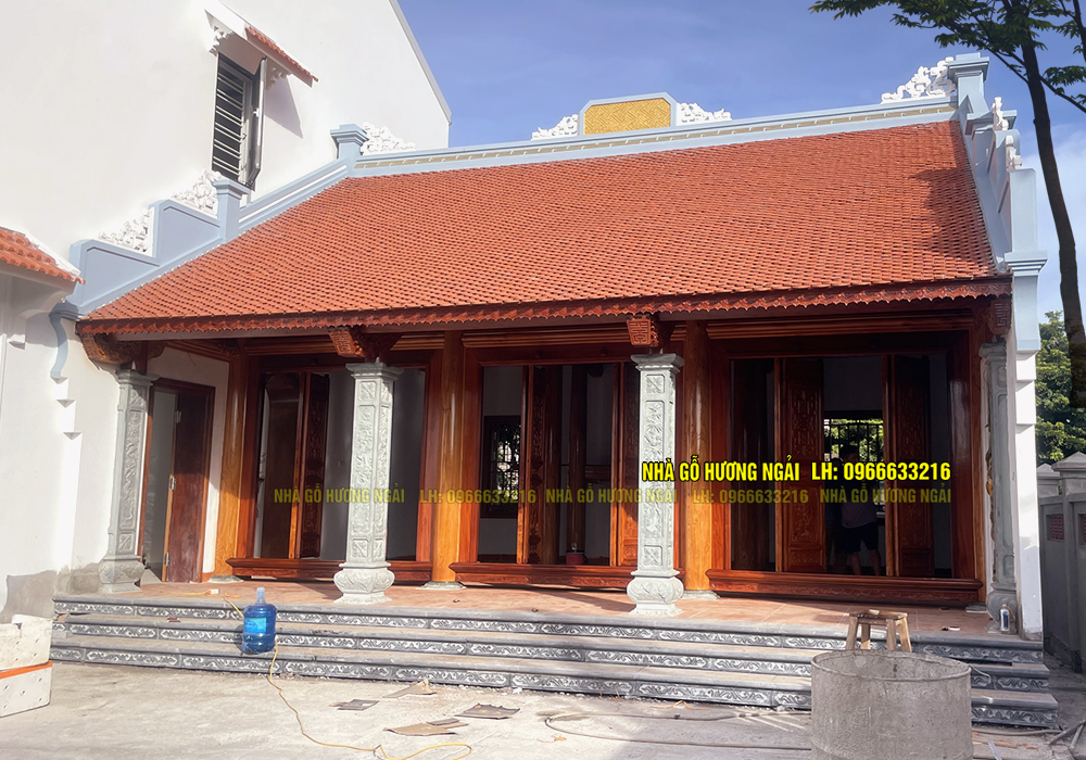 Nhà gỗ 3 gian 12 cột - kết hợp gỗ xoan và gỗ lim