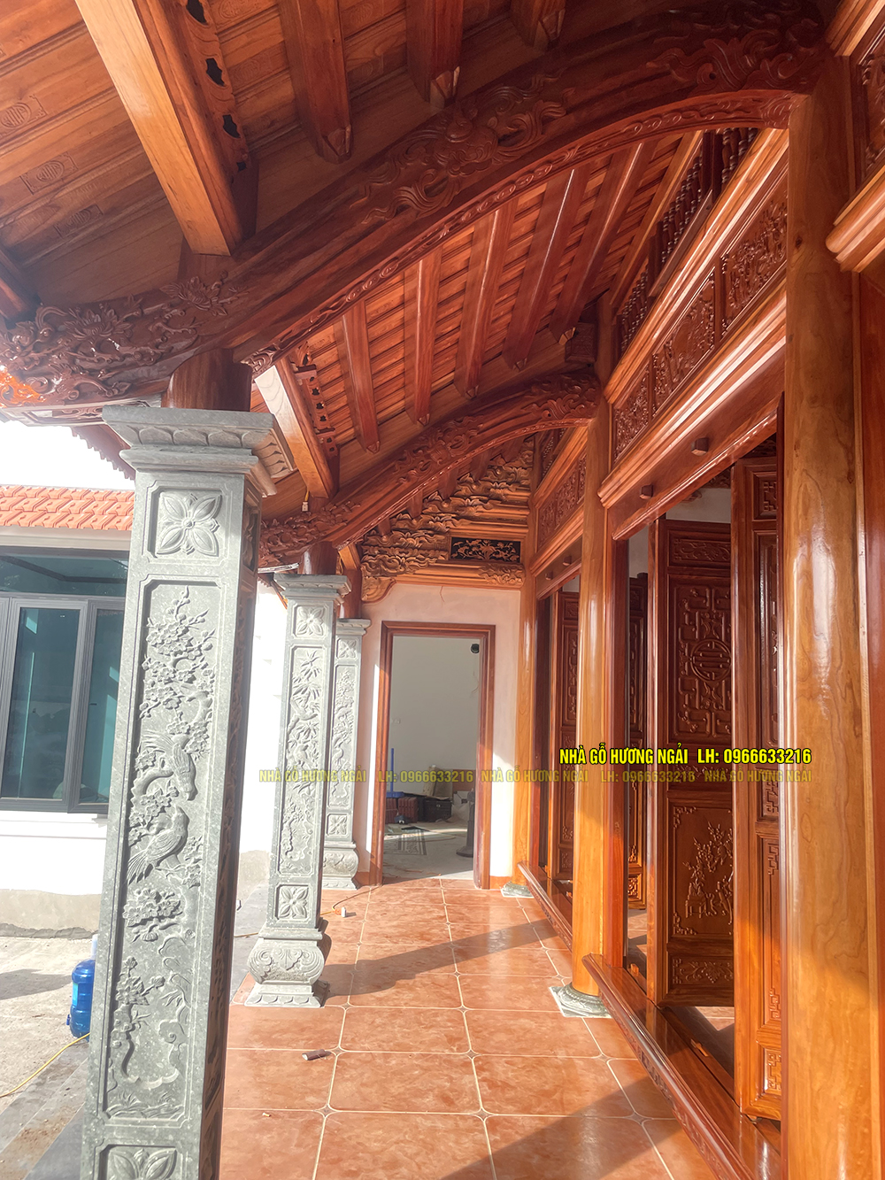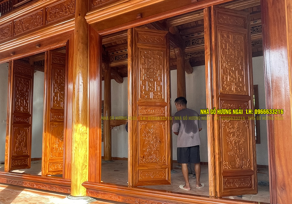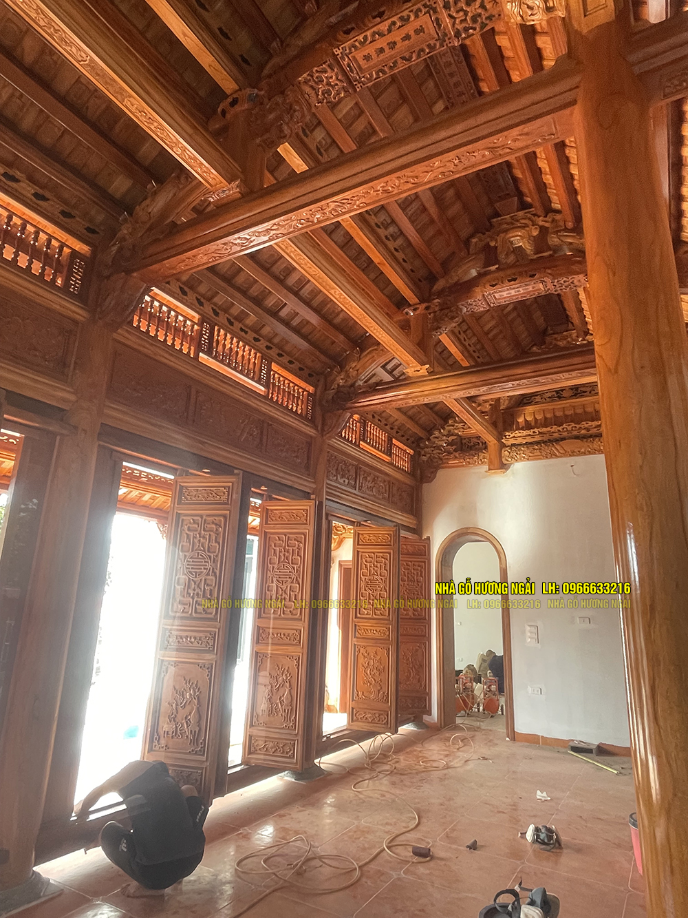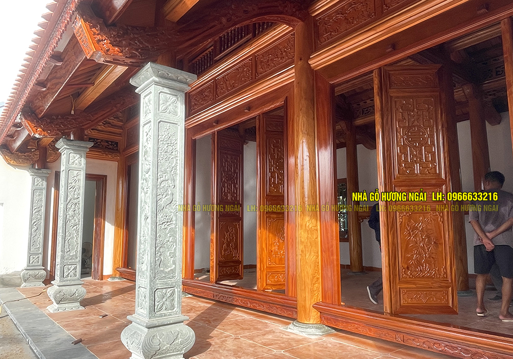 Nhà gỗ 3 gian 12 cột - kết hợp gỗ xoan và gỗ lim