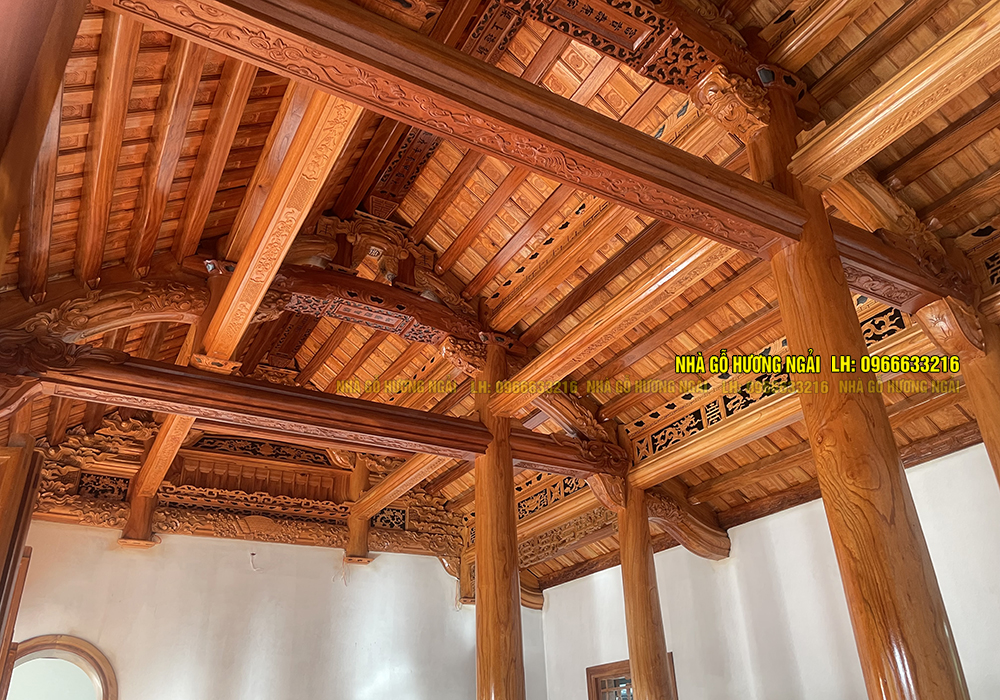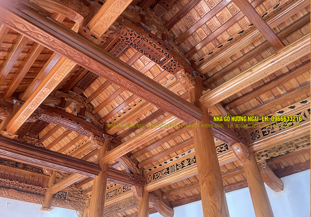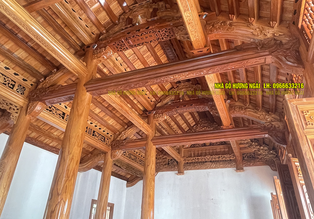 - - Hiên rộng: 1950 mm- Hai vì giữa kẻ truyền, hai vì bên con trồng đấu sen