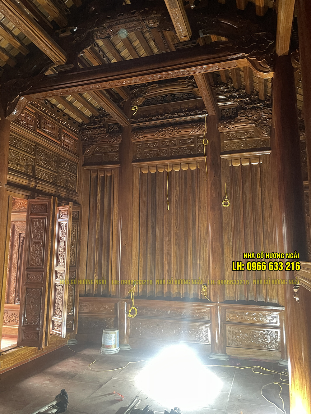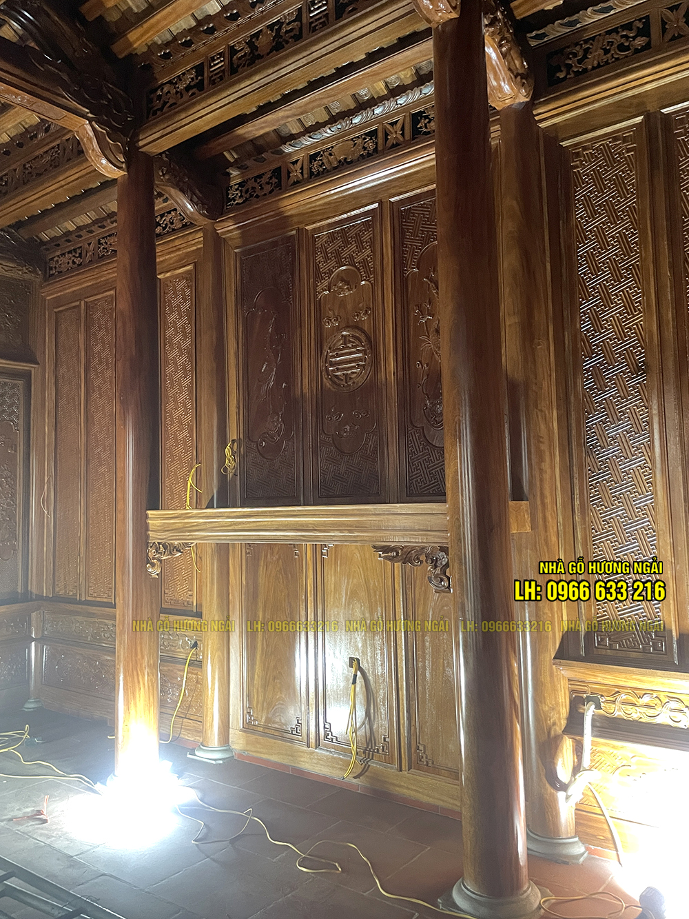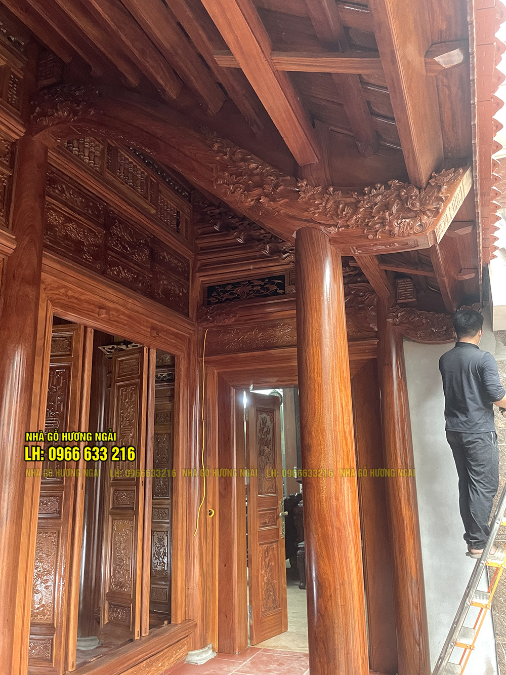 Nhà gỗ 3 gian 20 cột bằng gỗ lim Nam Phi