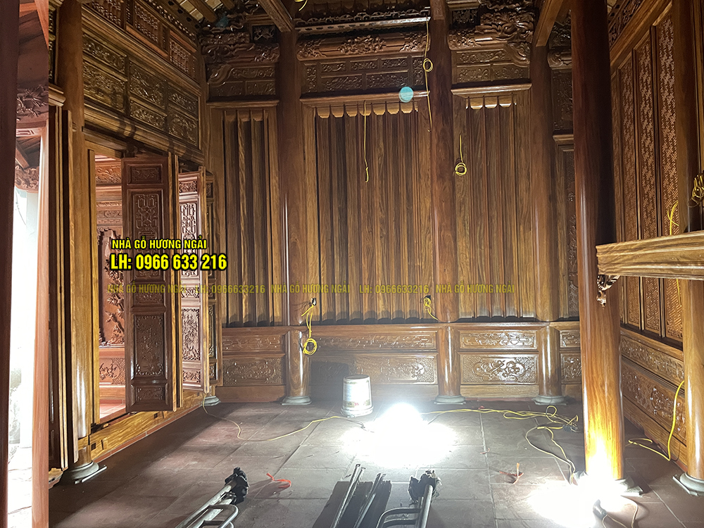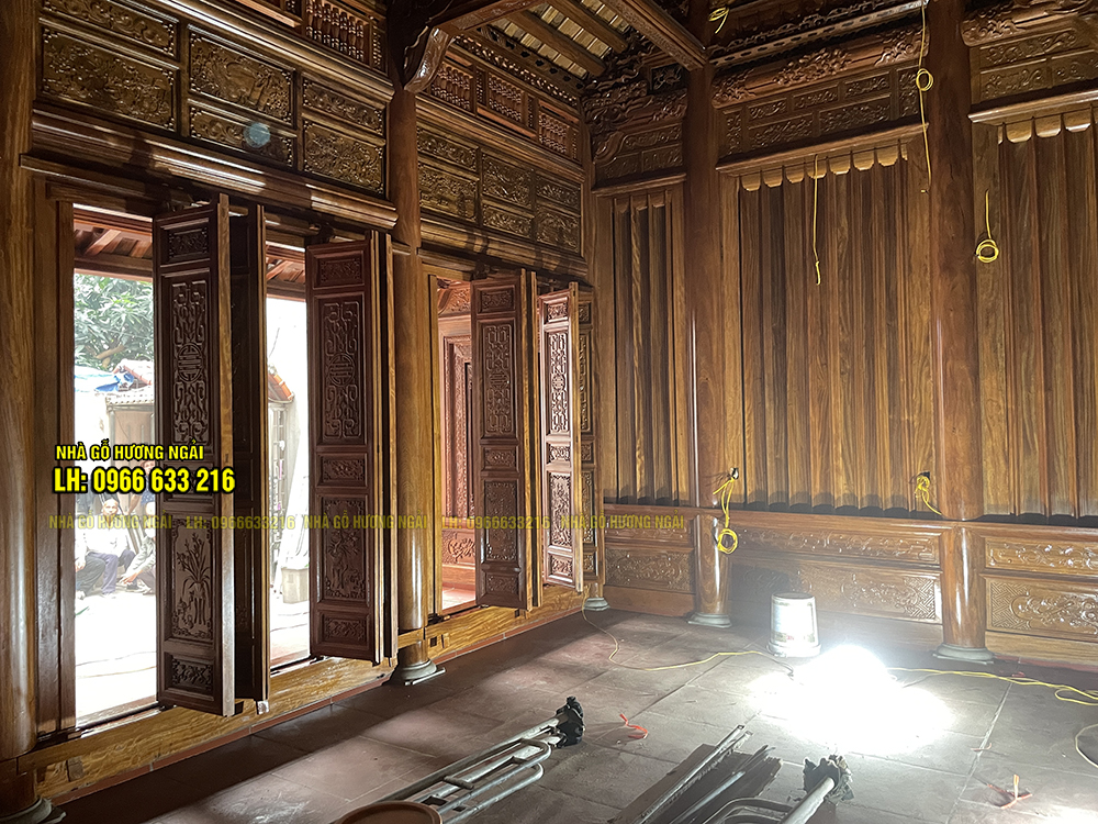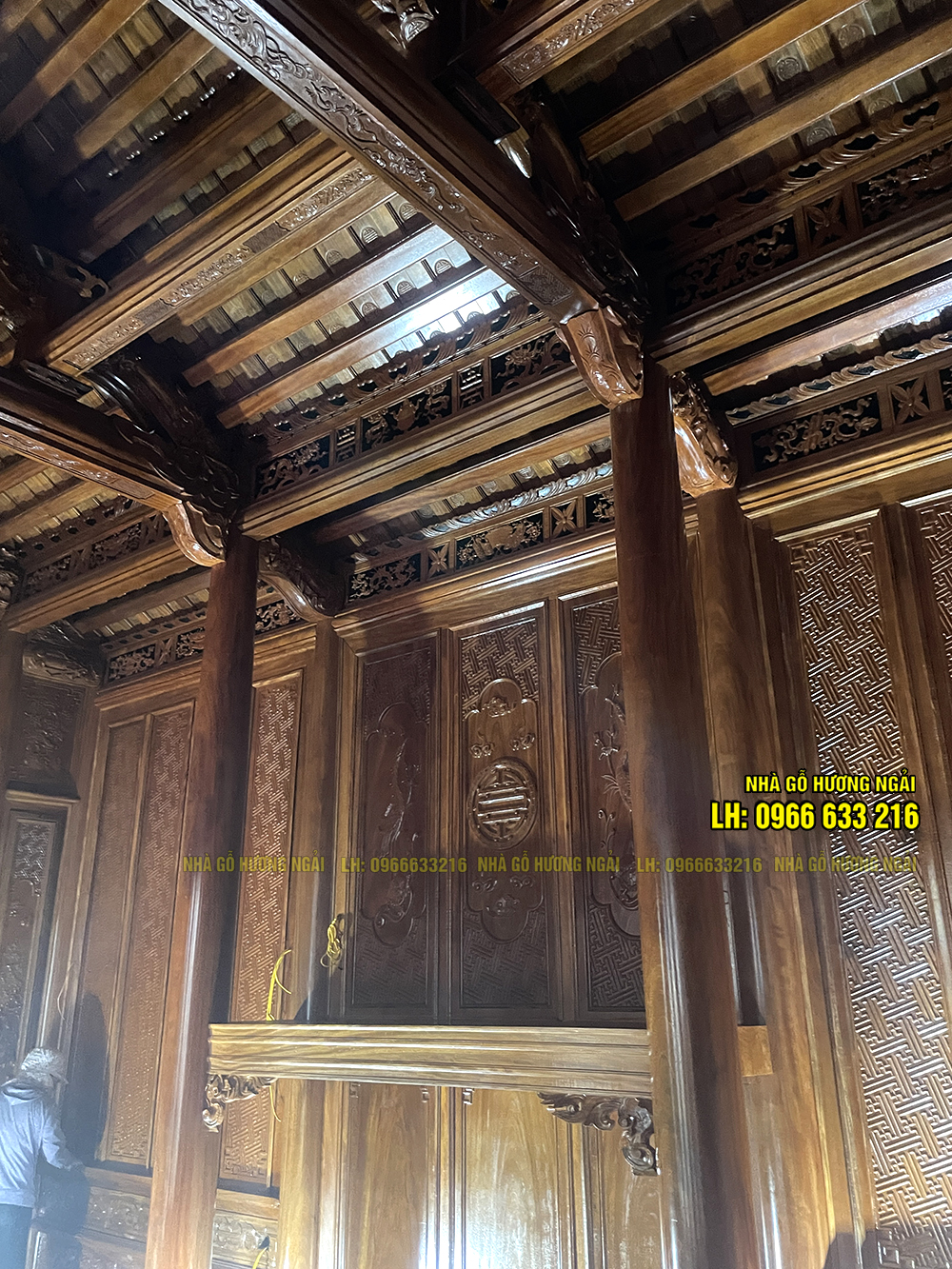 Nhà gỗ 3 gian 20 cột bằng gỗ lim Nam Phi
