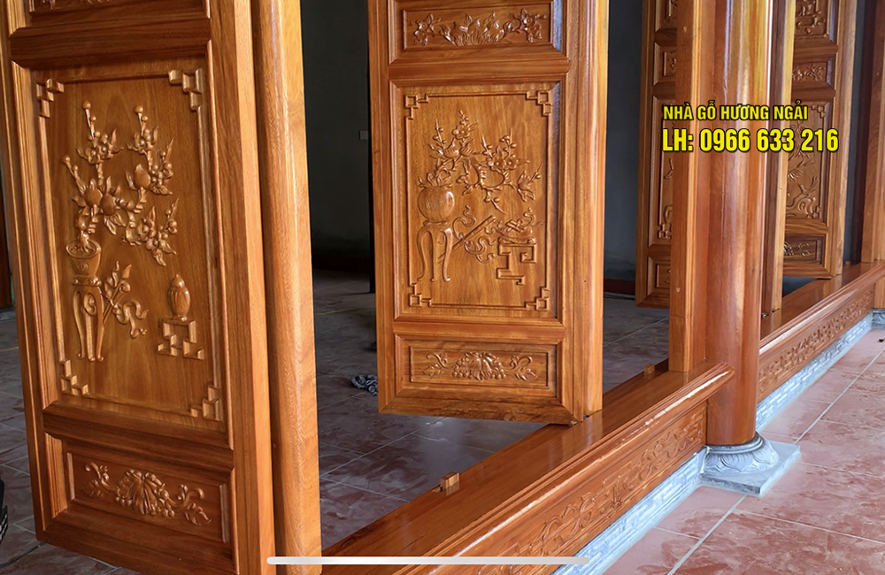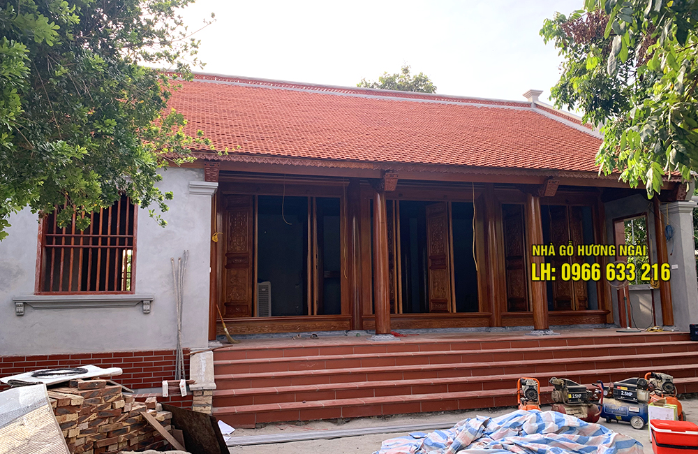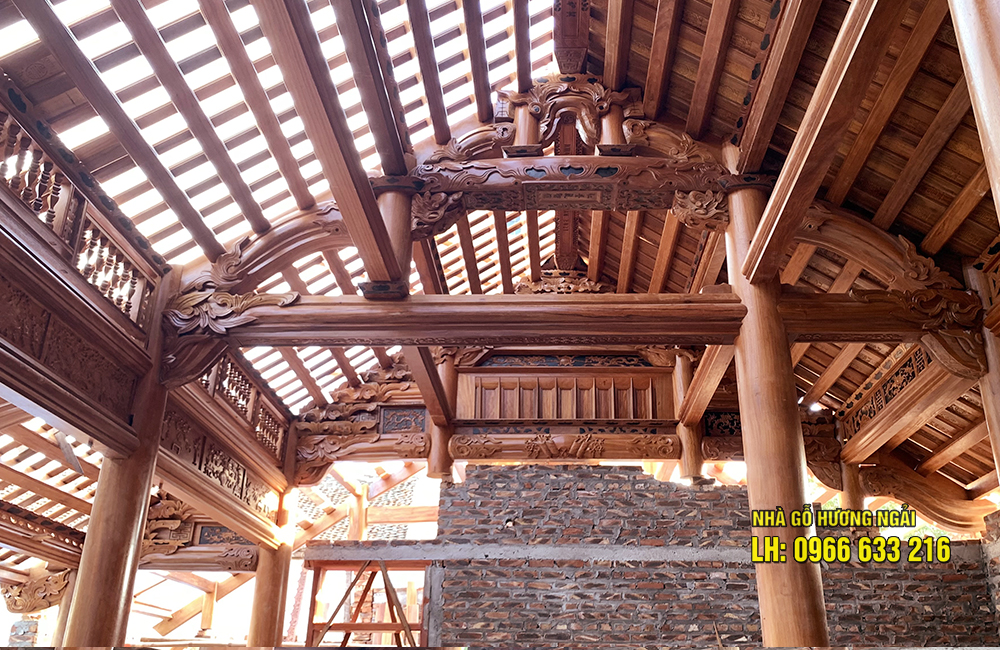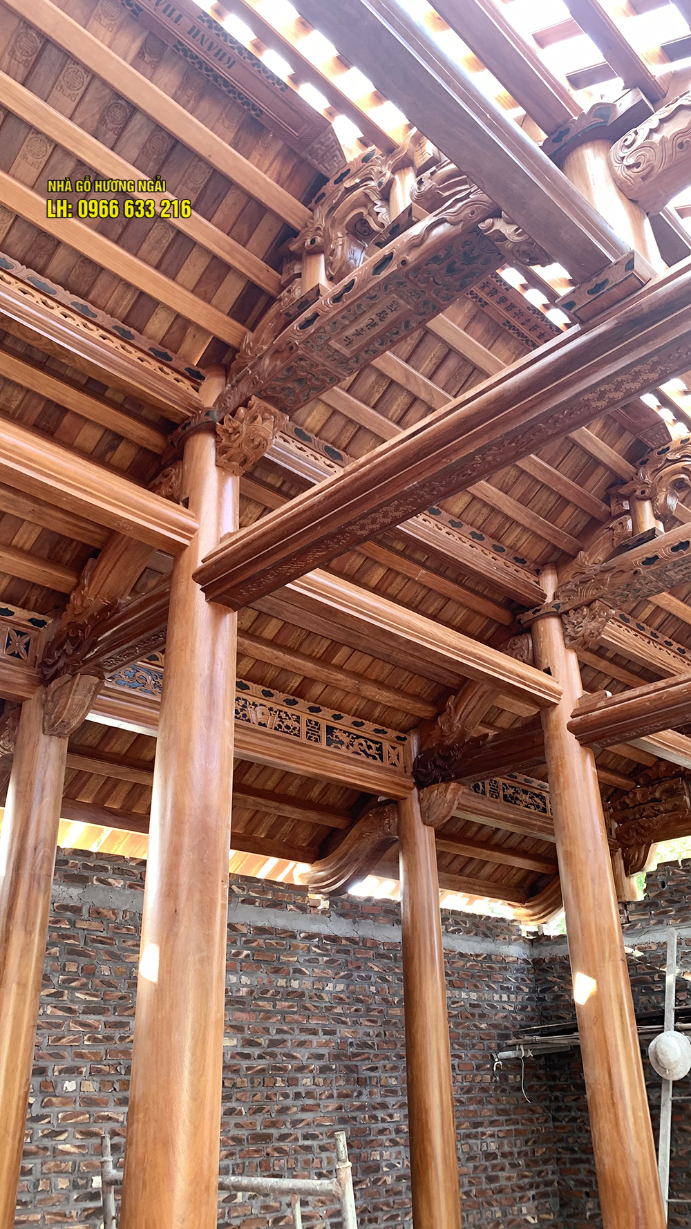Nhà gỗ 4 gian 12 cột bằng gỗ lim Nam Phi