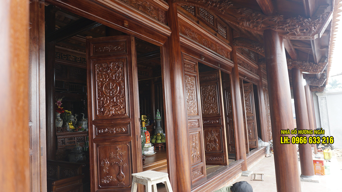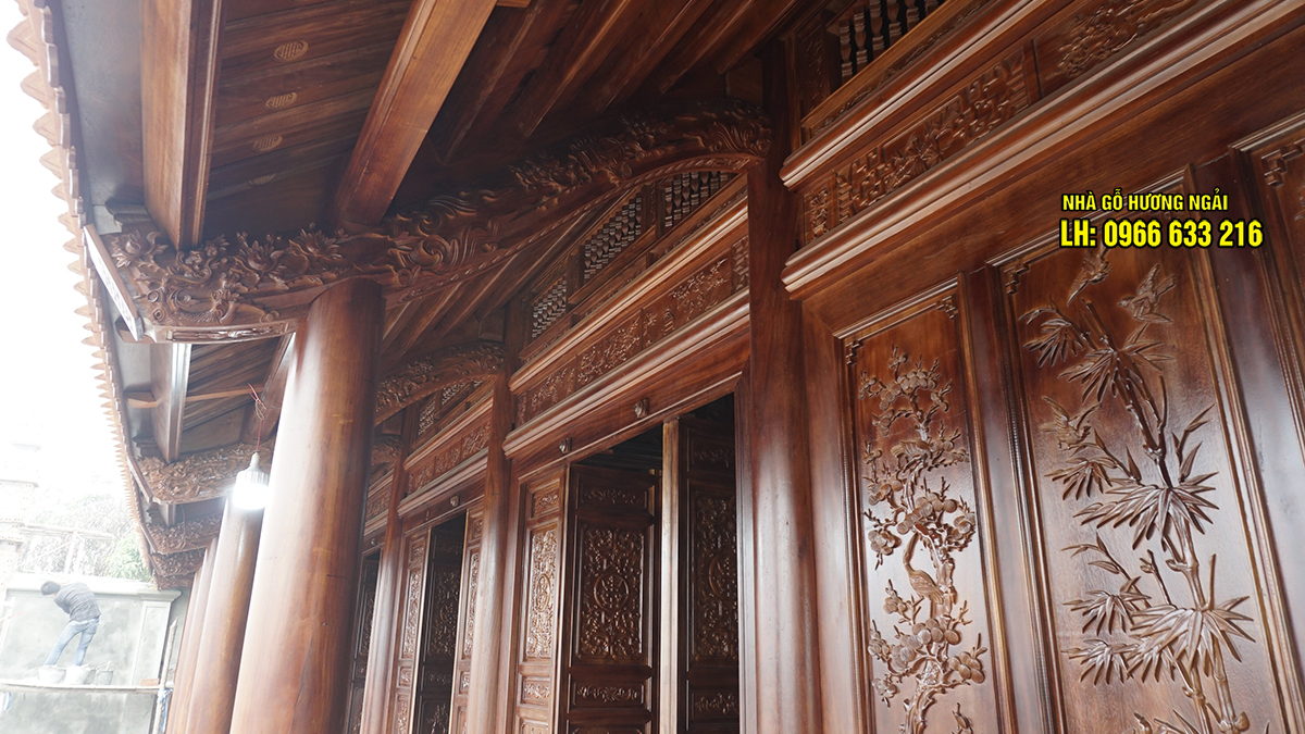 Nhà gỗ 5 gian hiên thông gỗ lim Nam Phi