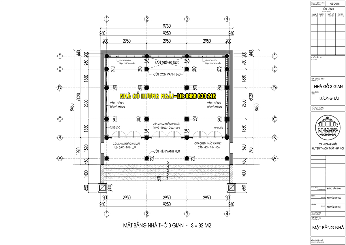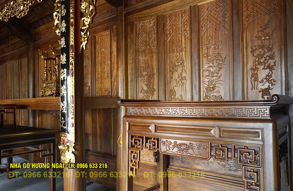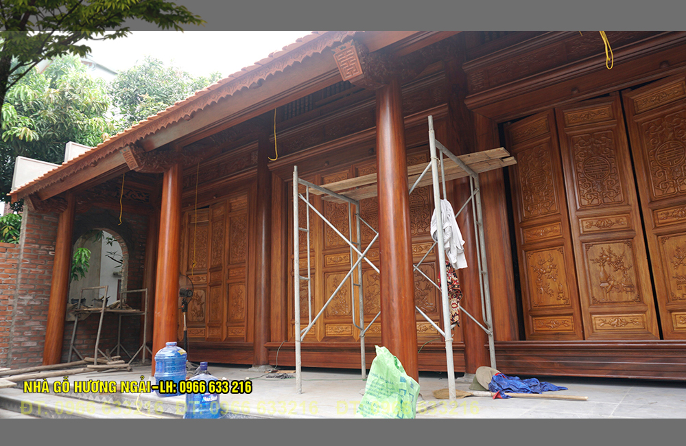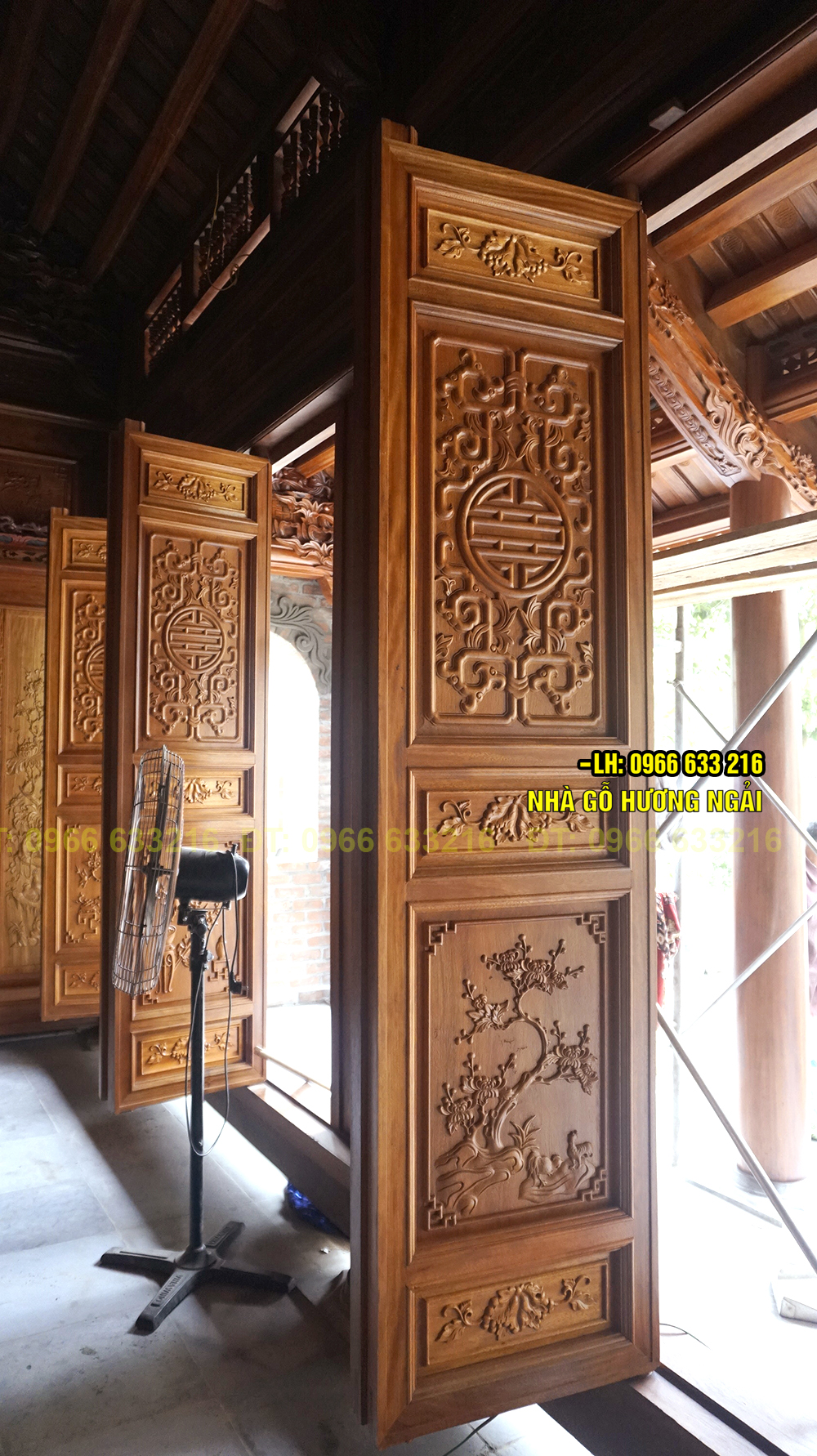 Nhà gỗ lim 3 gian 24 cột16:08 - 25/06/2024Công trình nhà gỗ, THÔNG SỐ CƠ BẢN- Dạ tàu cao: 2450 mm - Gian rộng: 2950 mm - Lòng nhà rộng: 6020 mm - Hiên rộng: 2120 mm- Hai vì giữa kẻ truyền, hai vì bên con trồng đấu sen - Cột cái vanh 950mm, cột con vanh 860mm, Cột hiên vanh 760 - Cửa bức bàn đục trạm hai mặt Chia sẻ: