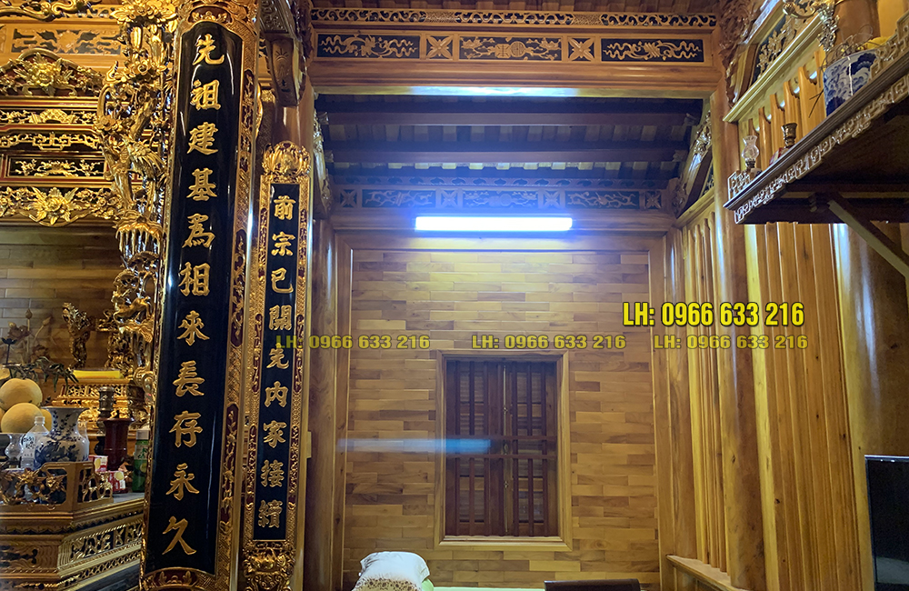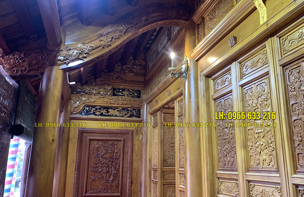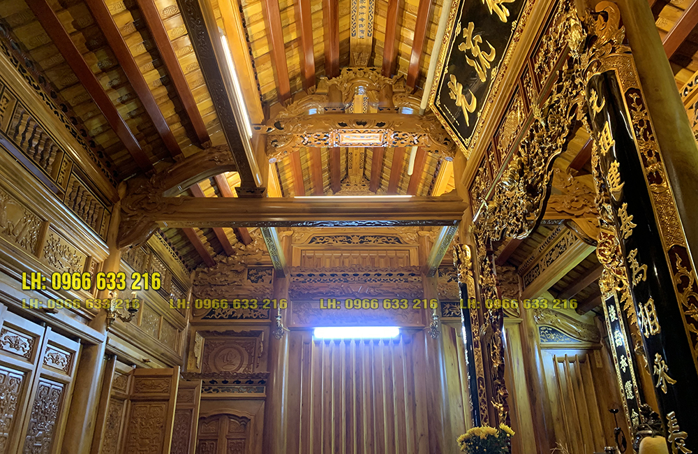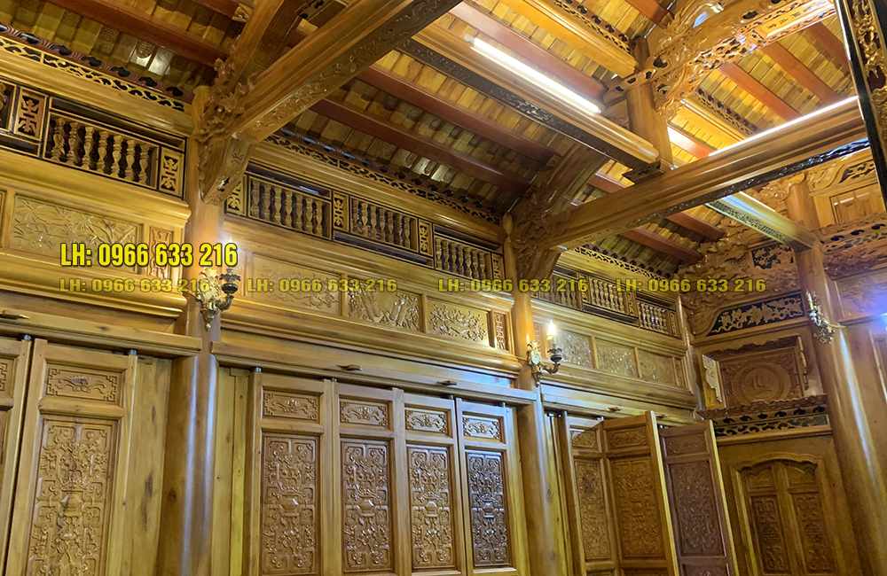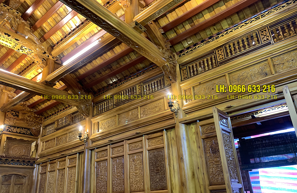 Nhà gỗ mít 3 gian 22 cột17:01 - 07/04/2022Công trình nhà gỗ, THÔNG SỐ CƠ BẢN- Dạ tàu cao: 2450 mm - Gian giữa rộng: 2750 mm - Hai gian bên rộng: 2620mm - Lòng nhà rộng: 5350 mm - Hiên rộng: 1950 mm- Hai vì giữa kẻ truyền, hai vì bên con trồng đấu sen - Cột cái vanh 940mm, cột con vanh 860mm, Cột hiên vanh 780 - Cửa bức bàn đục trạm hai mặt Chia sẻ: