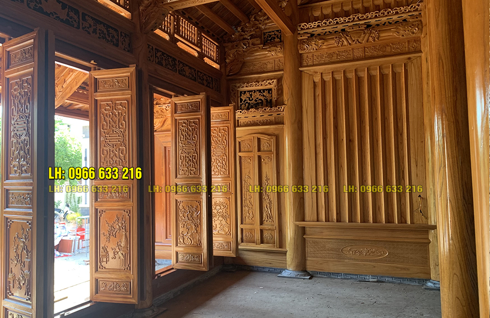 - - Hiên rộng: 1900 mm- Hai vì giữa kẻ truyền, hai vì bên con trồng đấu sen